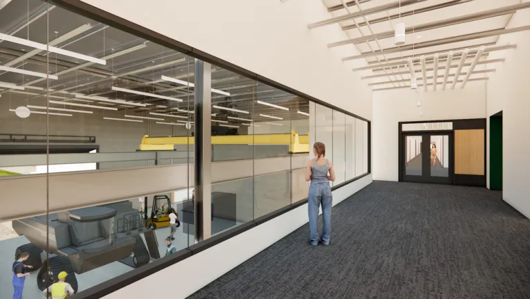 It takes a multi-disciplinary team to problem-solve and execute aspirational projects. Walk through Offerdahl Hall’s main doors and take in a 360-degree view of hands-on activities. With a metal fabrication facility, wood shop, welding lab, paint booth, electronics workbenches, and extensive 3D printing capabilities, this lively communal makerspace will spur entrepreneurial activity and invite students from all program areas to work side-by-side, exchange ideas, and find solutions to the industry’s most pressing needs.