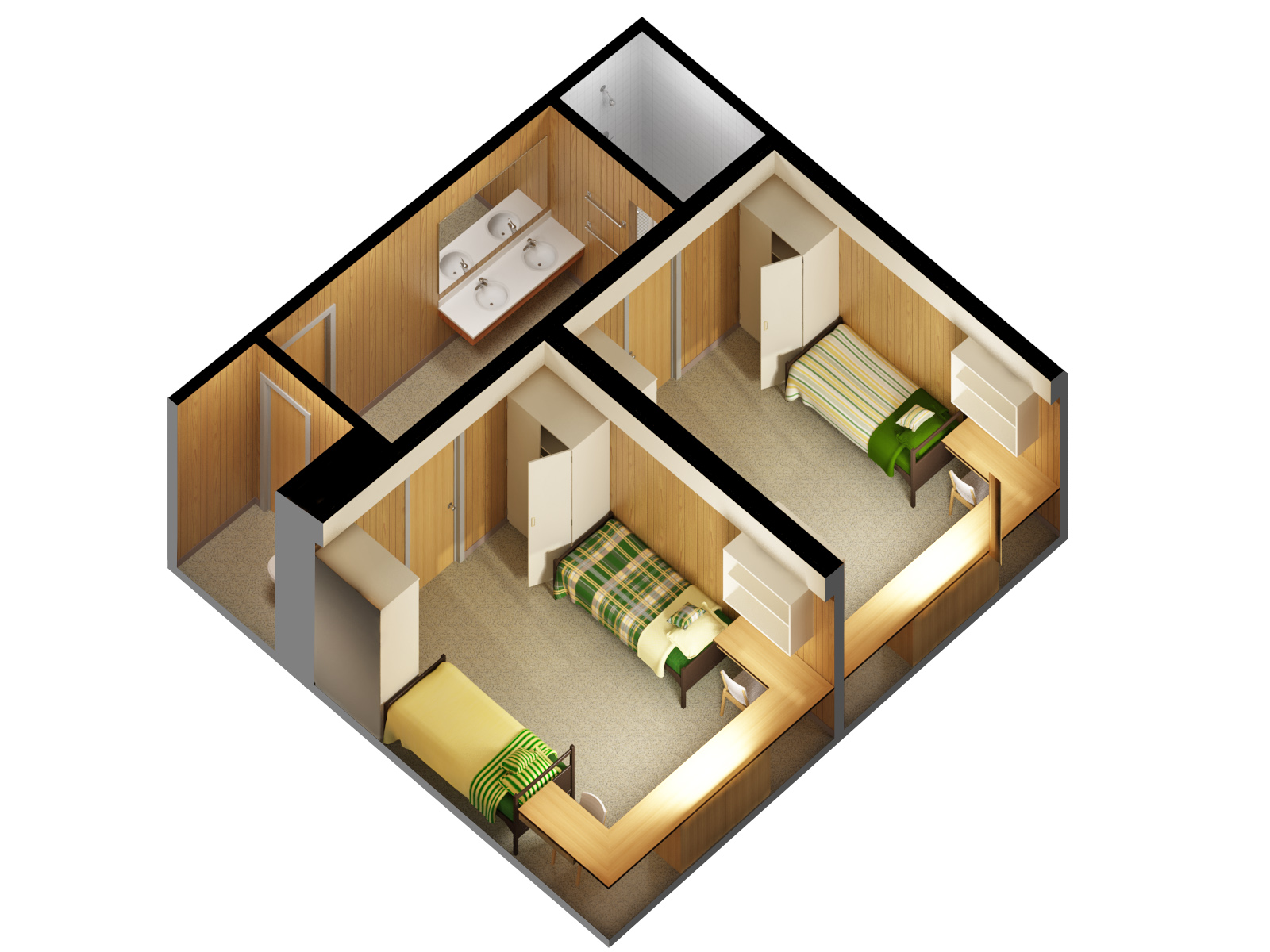 To see a rendering of a sample student room in Pavek, please click below: