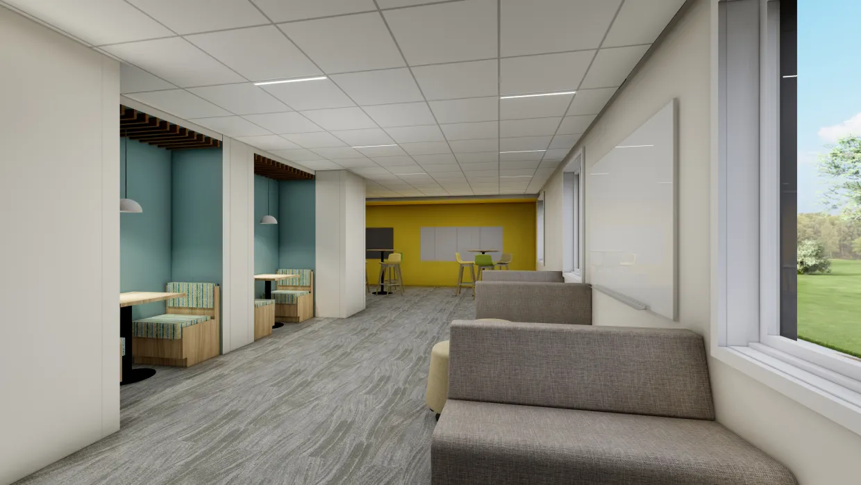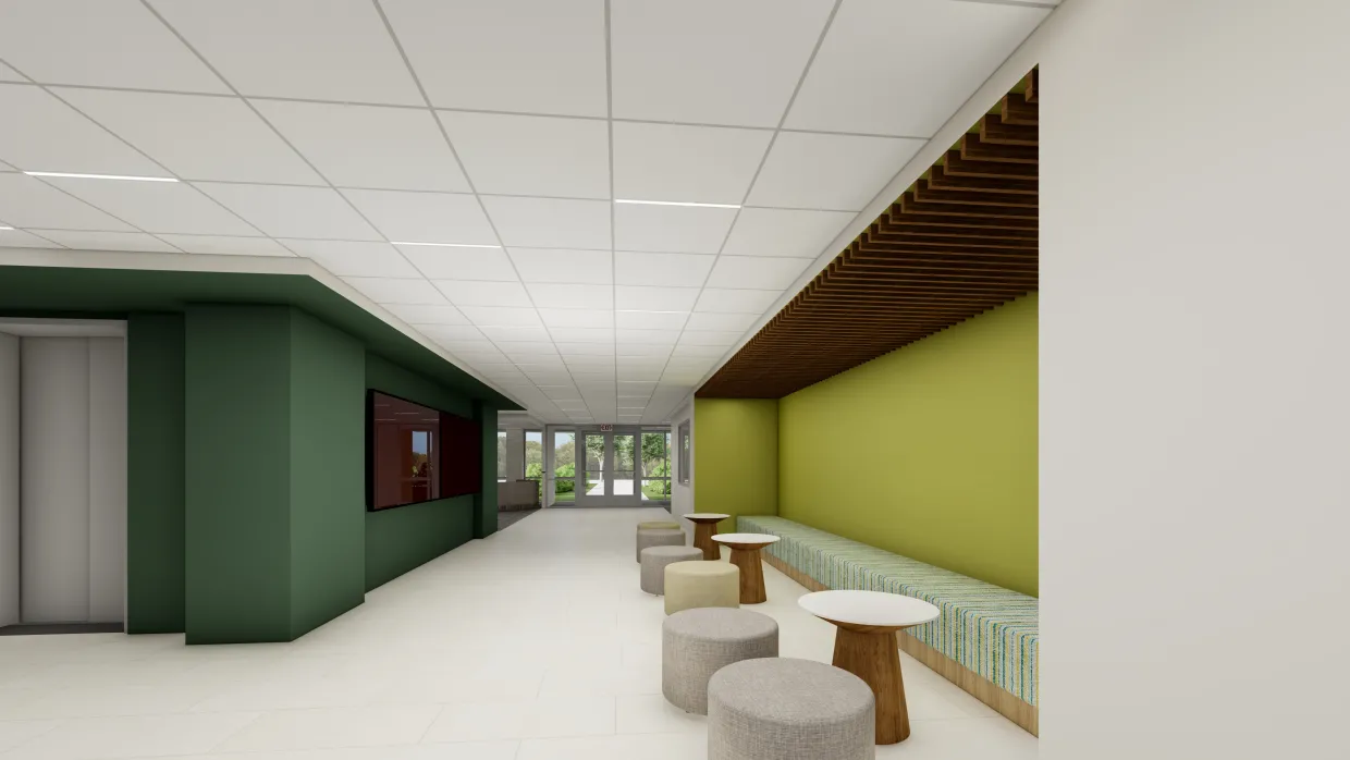 - Redesign of the entire first floor with study spaces, community lounge, and a central laundry room