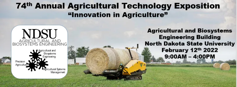 The 74th annual Agricultural Technology Exposition is scheduled for Saturday, Feb. 12, from 9 a.m. to 4 p.m. in NDSU’s Agricultural and Biosystems Engineering Building. The title of this year’s expo is “Innovation in Agriculture.”