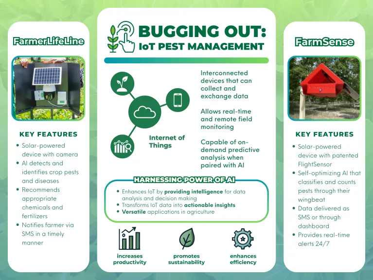 FarmSense is a solar-powered device that detects pests by classifying and counting pests through their wingbeats.