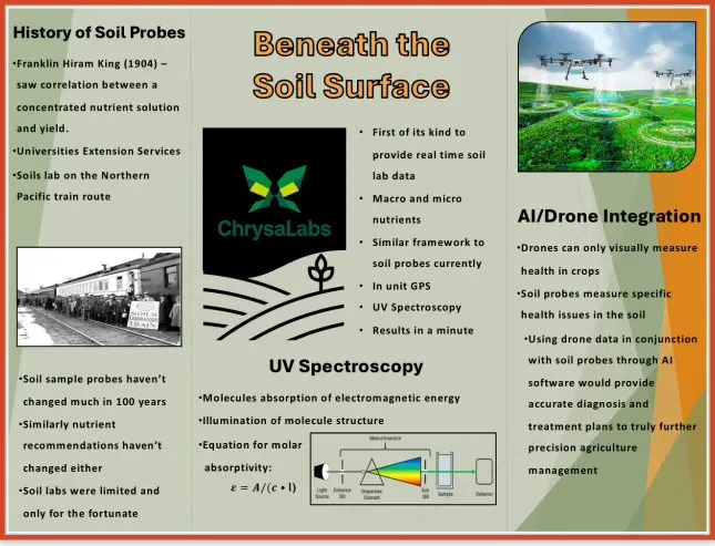 “Using drone data in conjunction with soil probes through AI software would provide accurate diagnosis and treatment plans to truly further precision agriculture management,” Mauch’s project display board states.