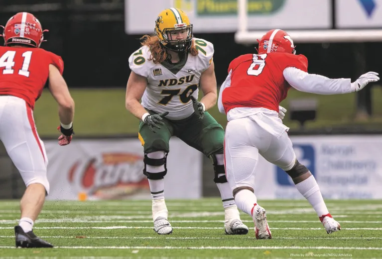 With his long, auburn hair and 6’6” frame, Cody Mauch is probably recognizable on the North Dakota State University (NDSU) campus – and the football field.