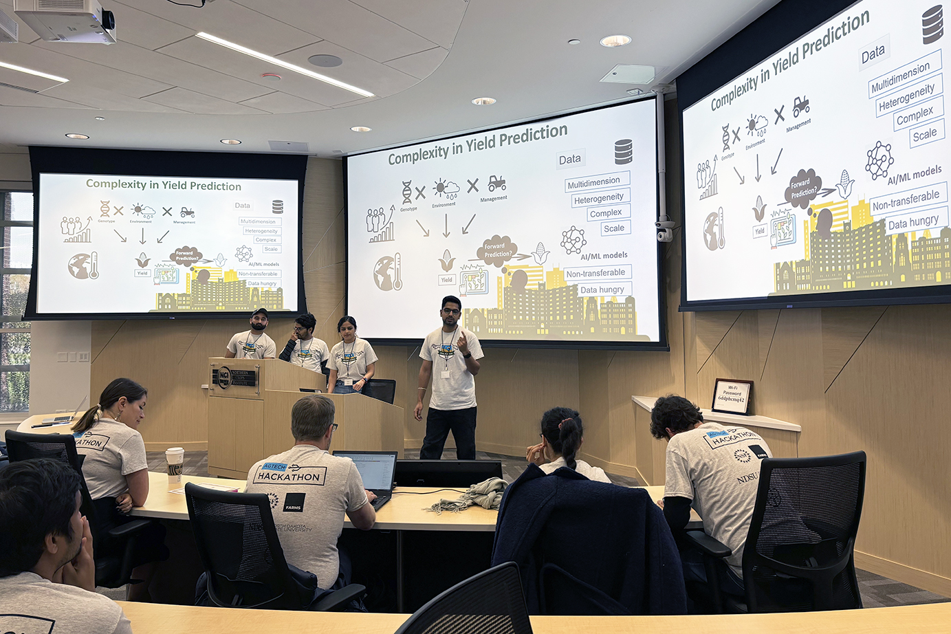 Since 2024, North Dakota State University has partnered with Bayer Crop Science and the National Science Foundation AgTech Engine to host the AgTech Hackathon, a multiday competition that challenges participants to apply analytical, computational and creative thinking skills to real-world agricultural and biological data problems.