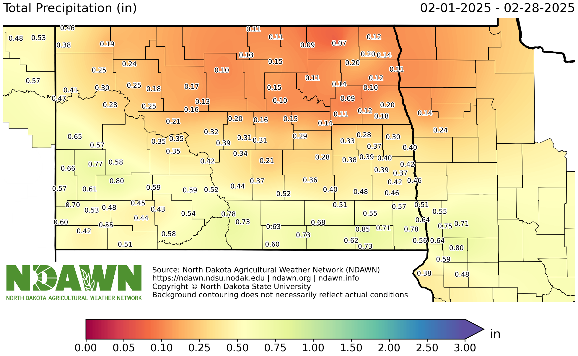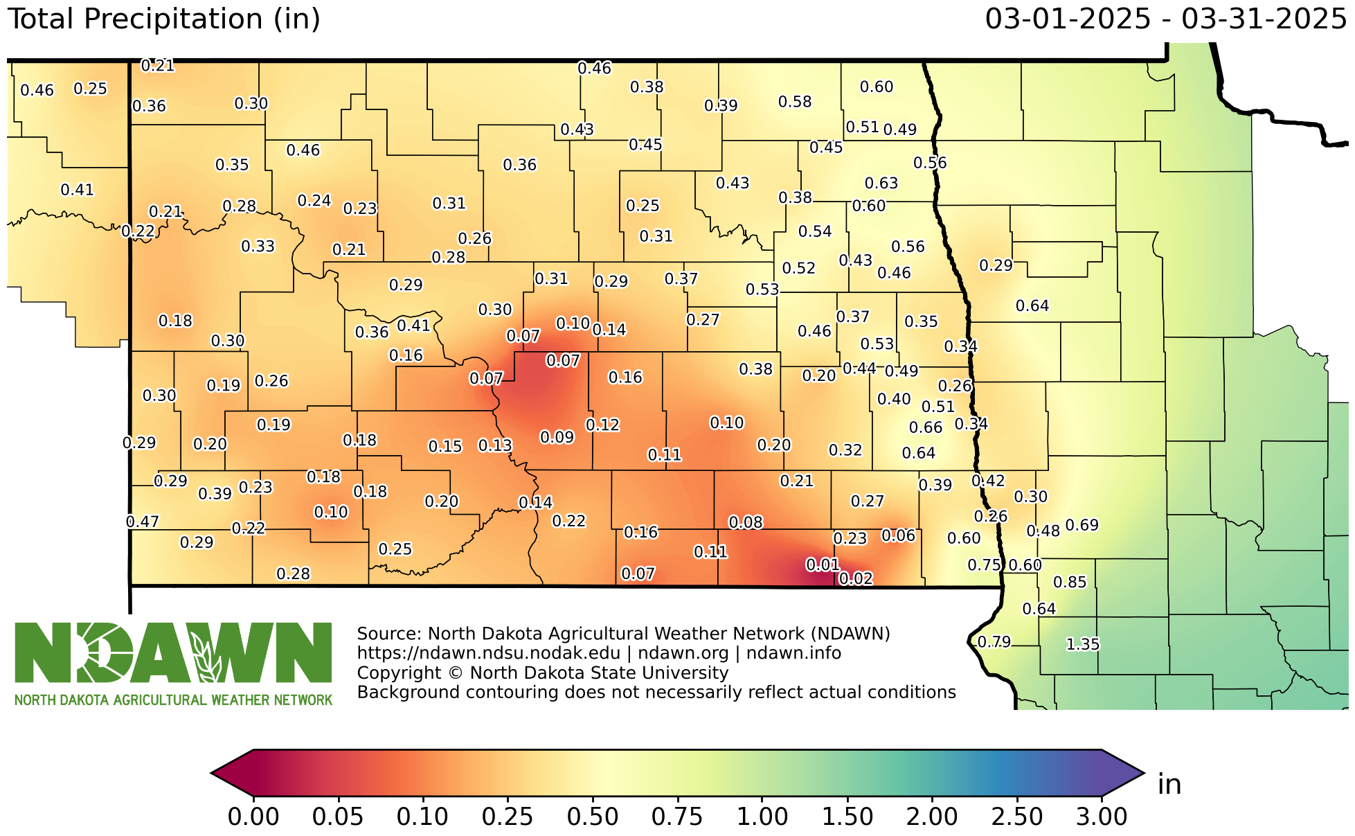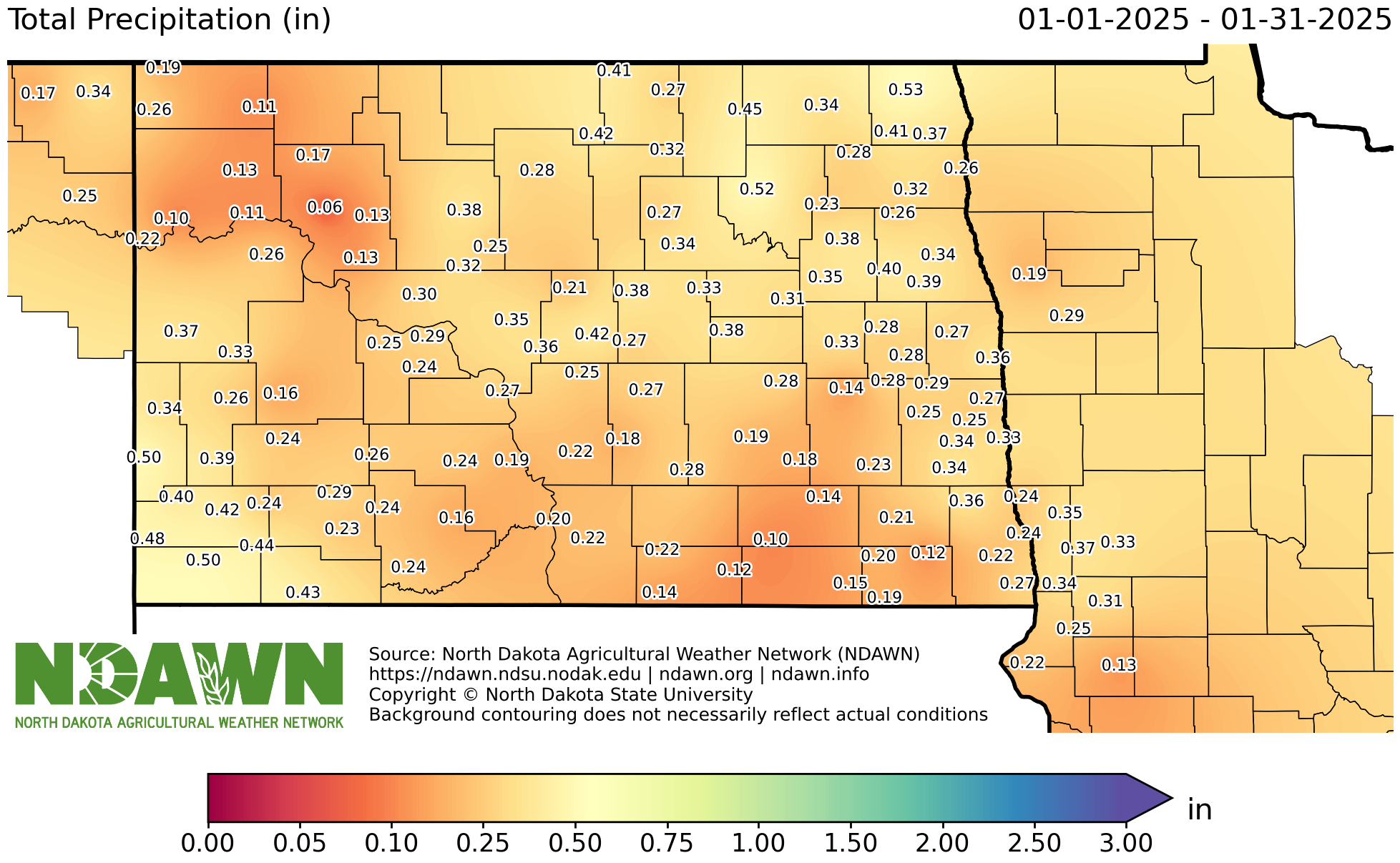 Breadcrumb Ag Home Ag Hub Ag Topics North Dakota State Climate Office Climate Data Precipitation Page Title Precipitation Text Annual Statistics for Total Precipitation, Percent of Normal Precipitation, and Departure from Normal Precipitation are presented Sections Total Precipitation20242023 Percent of Normal Precipitation20242023 Departure from Normal Precipitation20242023 Monthly and Seasonal Statistics Archive Connect Ag Hub Topics Ag Topics North Dakota State Climate Office Contact NDAWN Current Conditions Climate Data Historical Daily Weather Bismarck Fargo Grand Forks Williston Climate Normals High Temperature Low Temperature Average Temperature Precipitation Spring Frost Fall Frost Air Temperature Precipitation Wind ENSO Energy Climate Summaries Outlook Crop Production Crop & Pest Report Subscribe Variety Trials Tools Crops Soybeans In the Pod Soybean Updates Iron Deficiency Chlorosis in Soybean Late Planting Soybean Nitrogen and Soybean Nodulation Results of Foliar Fertilizer Application in Soybean Soybean Aphid - Overwintering Mortality Corn Estimating Corn Grain Yield Seed Corn Maggot Wheat How Heat and Water Stress Effects Wheat Plants in Vegetative Stages Alfalfa Time of Seeding for New Alfalfa Establishment Canola Canola Straight Cut or Swath Scouting for and Treating Canola Flea Beetle Barley Estimating Yield Weed Control Guide Durum Wheat and Barley Control Moisture with Natural Air Drying Scouting for Ergot Drying Wheat or Barley with Heat Grain Stream Sampling and Sampler Construction Small Grain Damage from Frost Dependent on Many Factors Chickpea Dry Edible Bean Harvest Tips for Frozen Dry Edible Beans Field Pea Flax Forages Forage Quality of Oat Hay Forage Quality of Barley Hay - Fargo Forage Quality of Barley Hay - Carrington Cool Season Forages for Hay Forage Brassicas for Grazing Sorghum as Silage 2012 Sorghum as Silage 2013 Watch for Poisonous Blister Beetles When Cutting Hay Hemp Seed Lentils Oats Oat Production in North Dakota Potatoes Safflower Sugarbeets Best Management Practices for Highest Returns in Late Planted Sugarbeet Boron/Calcium Deficiency in Drought-Stressed Sugar Beets Cercospora Leaf Spot in Sugarbeet Common Ragweed in Sugarbeet Managing of Rhizoctonia Damping-Off, Crown Rot and Root Rot of Sugarbeet Monitoring and Controlling Sugarbeet Root Maggot Sugarbeet Report What should I do if I have Waterhemp Escapes in Sugarbeet? Sunflowers Other Crops Sorghum Grain Soil Health Aggregation & Erosion Soil Erosion Soil Crusting Soil Compaction Aggregates are a part of soil structure and function Tips for Handling Flooded Soils Groundwater and Soils Soil Water Movements; Gravitational Movement and Capillary Rise Video Water Management Suggestions to Improve Soil Health ND On-Farm Research Network Soil Fertility Considerations for Use of Enhanced Efficiency Nitrogen Fertilizers Guidelines for Fall N Application in North Dakota Late Wet Spring Soil/Fertilizer Considerations Soil Testing The Cost of Soil Erosion The Relationship of Between Crop Production and Sustainability Soil Biology Saline and Sodic Soils Soil Salinity Soil Sodicity Soil Salinity and Sodicity Challenges Soil Sodicity and Its Management What Should We Do First On Sodic Soils? Organic Matter & Soil The Fertilizer Value of Wheat Straw Cover Crops How to Select a Cover Crop Wide-Row Corn with Cover Crops Broadleaf Crops 2016 Cover Crops Report Cover Crop Seeds and Pictures Winter Rye as a Preceding Cover Crop for Dry Bean Cover Crop Webinar Series Prevent Plant Options Selecting a Cover Crop Benefits of Adding Cover Crops to Your Rotation Nitrogen Credit from Cover Crops Cover Crop and Residual Herbicide Information Cover Crops for Wet Field Conditions Irrigation & Tile Drainage Agricultural Drainage Irrigation in North Dakota Chemigation Irrigation Scheduling Irrigation - Frequently Asked Questions Subsurface Water Management Impact of Flooding / Waterlogging on Crop Development Diseases, Insects and Weeds Integrated Pest Management Barley Canola Insect Traps Corn Grasshoppers Soybeans Sunflower Sunflower Insect Traps Wheat Wheat Insect Traps Crop Diseases Abiotic (Non-Infectious) Symptoms in Wheat Brown Stem Rot of Soybeans (BSR) Charcoal Rot of Soybeans Distinguishing Soybean Leaf Diseases Expected Yield Loss from Goss’s Wilt Fungicide Application on Soybean Scouting for Corn Stalk Rot Sudden Death Syndrome (SDS) of Soybeans White Mold: Summary of Risk Factors How to Sample for Soybean Cyst Nematode (SCN) Leaf Discolorations in Corn (08/13/20) Scouting for Clubroot of Canola (08/06/20) Review of Sunflower Rust (07/30/20) Scouting for Dry Edible Bean Rust Small Grain Diseases: Management of Those More Common and Severe in Dry Years Diseases in Drought Years (07/02/20) Insects Clean Up Grain Bins to Reduce Insect Pests Weeds Temperature and Herbicide Application Questions CDMS Label Search Early Season Weed ID Samples: The Good, the Bad, and the Ugly Herbicides and Hot Weather ND Herbicide / Weed Surveys ND Weed Control Research Scout for and Create Weed Maps Palmer Amaranth Pesticides Tank Cleanout Procedures (06/18/20) Fumigation Resources Dicamba: Considerations for Dicamba Alternatives (06/11/20) Flooded Pesticides Chlorpyrifos Update (Summer 2022) Which Insecticide is Best for Grasshopper Control? Drying & Storage Corn & Soybeans Wheat and Barley Fans and Energy Efficiency Storage Sunflower, Dry Bean and Canola Events Livestock Tools Alternative Cow Replacement Backgrounding 550 lb Steers CalfWeb/Cattle Feeding Breakeven Budget CalfWeb/Cattle Feeding Closeout Calculator Cow Herd Budget Tool Estimating Winter Cattle Forage Needs LFP Calculator Projected Fall Cow-Calf Budget Summer Grazing Budget Beef BQA & Health Necropsy – Determining Why a Calf Died What is Beef Quality Assurance BQA Checklist BQA Post Test BQA Pre Test BQA Records Transfer Form Certification Requirements of the North Dakota Beef Quality Assurance Program ND BQA Registration Forms for Recertification NDBQA Producer