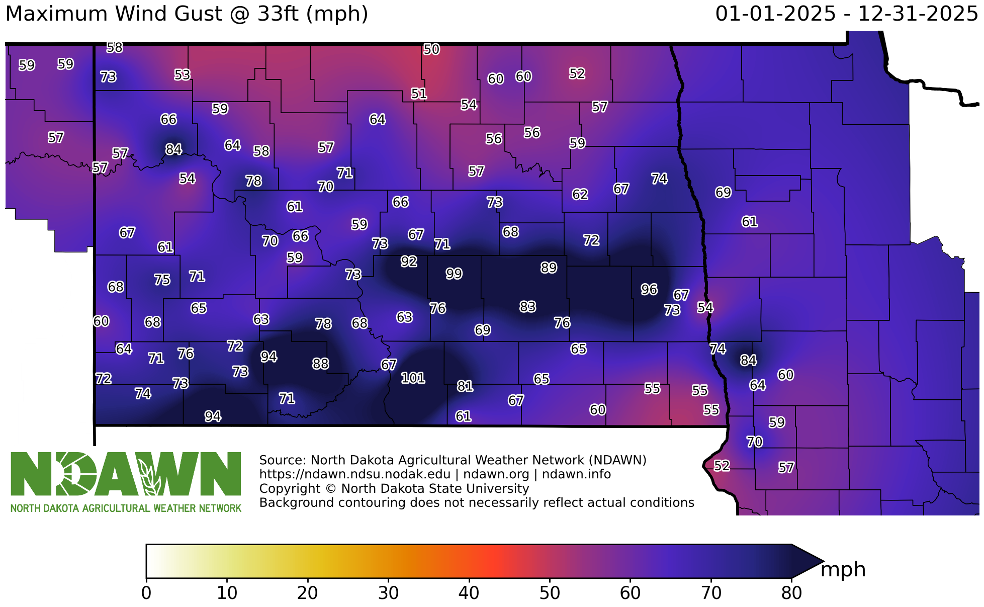 Breadcrumb Ag Home Ag Hub Ag Topics North Dakota State Climate Office Climate Data Wind Page Title Wind Sections Maximum Wind Gust2025 Historical Monthly Wind Roses for North DakotaDickinsonFargoGrand ForksMandanMinotWilliston Connect Ag Hub Topics Ag Topics North Dakota State Climate Office Contact NDAWN Current Conditions Climate Data Historical Daily Weather Bismarck Fargo Grand Forks Williston Climate Normals High Temperature Low Temperature Average Temperature Precipitation Spring Frost Fall Frost Air Temperature Precipitation Wind ENSO Energy Climate Summaries Outlook Crop Production Crop & Pest Report Subscribe Variety Trials Tools Crops Soybeans In the Pod Soybean Updates Iron Deficiency Chlorosis in Soybean Late Planting Soybean Nitrogen and Soybean Nodulation Results of Foliar Fertilizer Application in Soybean Soybean Aphid - Overwintering Mortality Corn Estimating Corn Grain Yield Seed Corn Maggot Wheat How Heat and Water Stress Effects Wheat Plants in Vegetative Stages Alfalfa Time of Seeding for New Alfalfa Establishment Canola Canola Straight Cut or Swath Scouting for and Treating Canola Flea Beetle Barley Estimating Yield Weed Control Guide Durum Wheat and Barley Control Moisture with Natural Air Drying Scouting for Ergot Drying Wheat or Barley with Heat Grain Stream Sampling and Sampler Construction Small Grain Damage from Frost Dependent on Many Factors Chickpea Dry Edible Bean Harvest Tips for Frozen Dry Edible Beans Field Pea Flax Forages Forage Quality of Oat Hay Forage Quality of Barley Hay - Fargo Forage Quality of Barley Hay - Carrington Cool Season Forages for Hay Forage Brassicas for Grazing Sorghum as Silage 2012 Sorghum as Silage 2013 Watch for Poisonous Blister Beetles When Cutting Hay Hemp Seed Lentils Oats Oat Production in North Dakota Potatoes Safflower Sugarbeets Best Management Practices for Highest Returns in Late Planted Sugarbeet Boron/Calcium Deficiency in Drought-Stressed Sugar Beets Cercospora Leaf Spot in Sugarbeet Common Ragweed in Sugarbeet Managing of Rhizoctonia Damping-Off, Crown Rot and Root Rot of Sugarbeet Monitoring and Controlling Sugarbeet Root Maggot Sugarbeet Report What should I do if I have Waterhemp Escapes in Sugarbeet? Sunflowers Other Crops Sorghum Grain Soil Health Aggregation & Erosion Soil Erosion Soil Crusting Soil Compaction Aggregates are a part of soil structure and function Tips for Handling Flooded Soils Groundwater and Soils Soil Water Movements; Gravitational Movement and Capillary Rise Video Water Management Suggestions to Improve Soil Health ND On-Farm Research Network Soil Fertility Considerations for Use of Enhanced Efficiency Nitrogen Fertilizers Guidelines for Fall N Application in North Dakota Late Wet Spring Soil/Fertilizer Considerations Soil Testing The Cost of Soil Erosion The Relationship of Between Crop Production and Sustainability Soil Biology Saline and Sodic Soils Soil Salinity Soil Sodicity Soil Salinity and Sodicity Challenges Soil Sodicity and Its Management What Should We Do First On Sodic Soils? Organic Matter & Soil The Fertilizer Value of Wheat Straw Cover Crops How to Select a Cover Crop Wide-Row Corn with Cover Crops Broadleaf Crops 2016 Cover Crops Report Cover Crop Seeds and Pictures Winter Rye as a Preceding Cover Crop for Dry Bean Cover Crop Webinar Series Prevent Plant Options Selecting a Cover Crop Benefits of Adding Cover Crops to Your Rotation Nitrogen Credit from Cover Crops Cover Crop and Residual Herbicide Information Cover Crops for Wet Field Conditions Irrigation & Tile Drainage Agricultural Drainage Irrigation in North Dakota Chemigation Irrigation Scheduling Irrigation - Frequently Asked Questions Subsurface Water Management Impact of Flooding / Waterlogging on Crop Development Diseases, Insects and Weeds Integrated Pest Management Barley Canola Insect Traps Corn Grasshoppers Soybeans Sunflower Sunflower Insect Traps Wheat Wheat Insect Traps Crop Diseases Abiotic (Non-Infectious) Symptoms in Wheat Brown Stem Rot of Soybeans (BSR) Charcoal Rot of Soybeans Distinguishing Soybean Leaf Diseases Expected Yield Loss from Goss’s Wilt Fungicide Application on Soybean Scouting for Corn Stalk Rot Sudden Death Syndrome (SDS) of Soybeans White Mold: Summary of Risk Factors How to Sample for Soybean Cyst Nematode (SCN) Leaf Discolorations in Corn (08/13/20) Scouting for Clubroot of Canola (08/06/20) Review of Sunflower Rust (07/30/20) Scouting for Dry Edible Bean Rust Small Grain Diseases: Management of Those More Common and Severe in Dry Years Diseases in Drought Years (07/02/20) Insects Clean Up Grain Bins to Reduce Insect Pests Weeds CDMS Label Search Early Season Weed ID Samples: The Good, the Bad, and the Ugly ND Herbicide / Weed Surveys ND Weed Control Research Scout for and Create Weed Maps Weed Control Guidline Wild World of Weeds Pesticides Tank Cleanout Procedures (06/18/20) Fumigation Resources Dicamba: Considerations for Dicamba Alternatives (06/11/20) Flooded Pesticides Chlorpyrifos Update (Summer 2022) Which Insecticide is Best for Grasshopper Control? Drying & Storage Corn & Soybeans Wheat and Barley Fans and Energy Efficiency Storage Sunflower, Dry Bean and Canola Events Livestock Tools Alternative Cow Replacement Backgrounding 550 lb Steers CalfWeb/Cattle Feeding Breakeven Budget CalfWeb/Cattle Feeding Closeout Calculator Cow Herd Budget Tool Estimating Winter Cattle Forage Needs LFP Calculator Projected Fall Cow-Calf Budget Summer Grazing Budget Beef BQA & Health Necropsy – Determining Why a Calf Died What is Beef Quality Assurance BQA Checklist BQA Post Test BQA Pre Test BQA Records Transfer Form Certification Requirements of the North Dakota Beef Quality Assurance Program ND BQA Registration Forms for Recertification NDBQA Producer Manual Recommendations of the NDBQA Program Common Beef Cattle Diseases in North Dakota Getting the Most Out of Your Biologicals Group Animal Health Records Herd Health Issues Individual Animal Health Record Injections NDBQA Program Health
