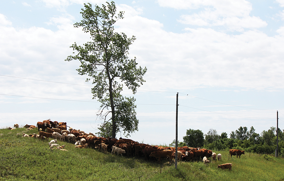 Consider turning cattle out temporarily under trees for shade. The decrease in feed efficiency or loss of weight is minimal, considering the potential cost of losing cattle due to heat stress.
