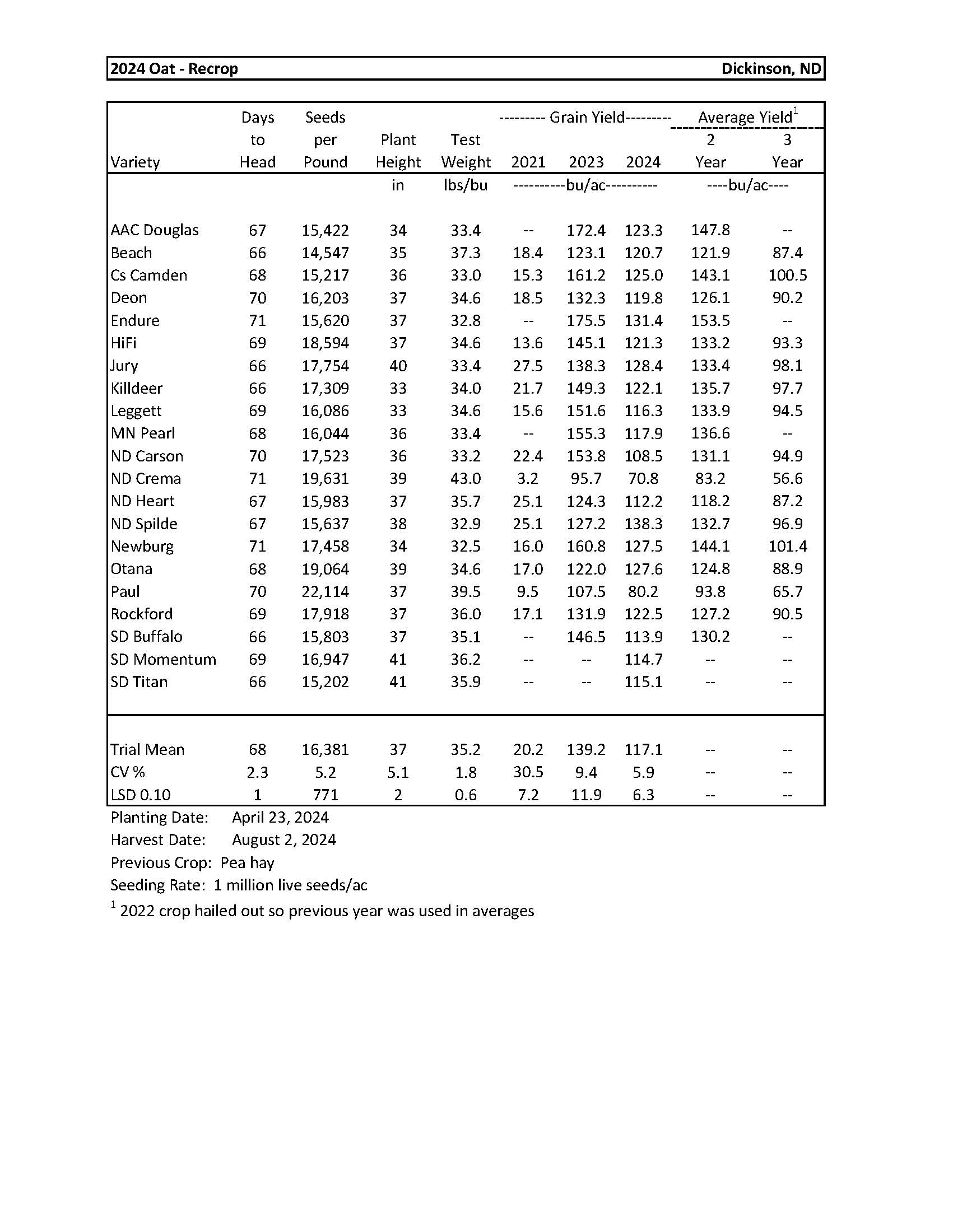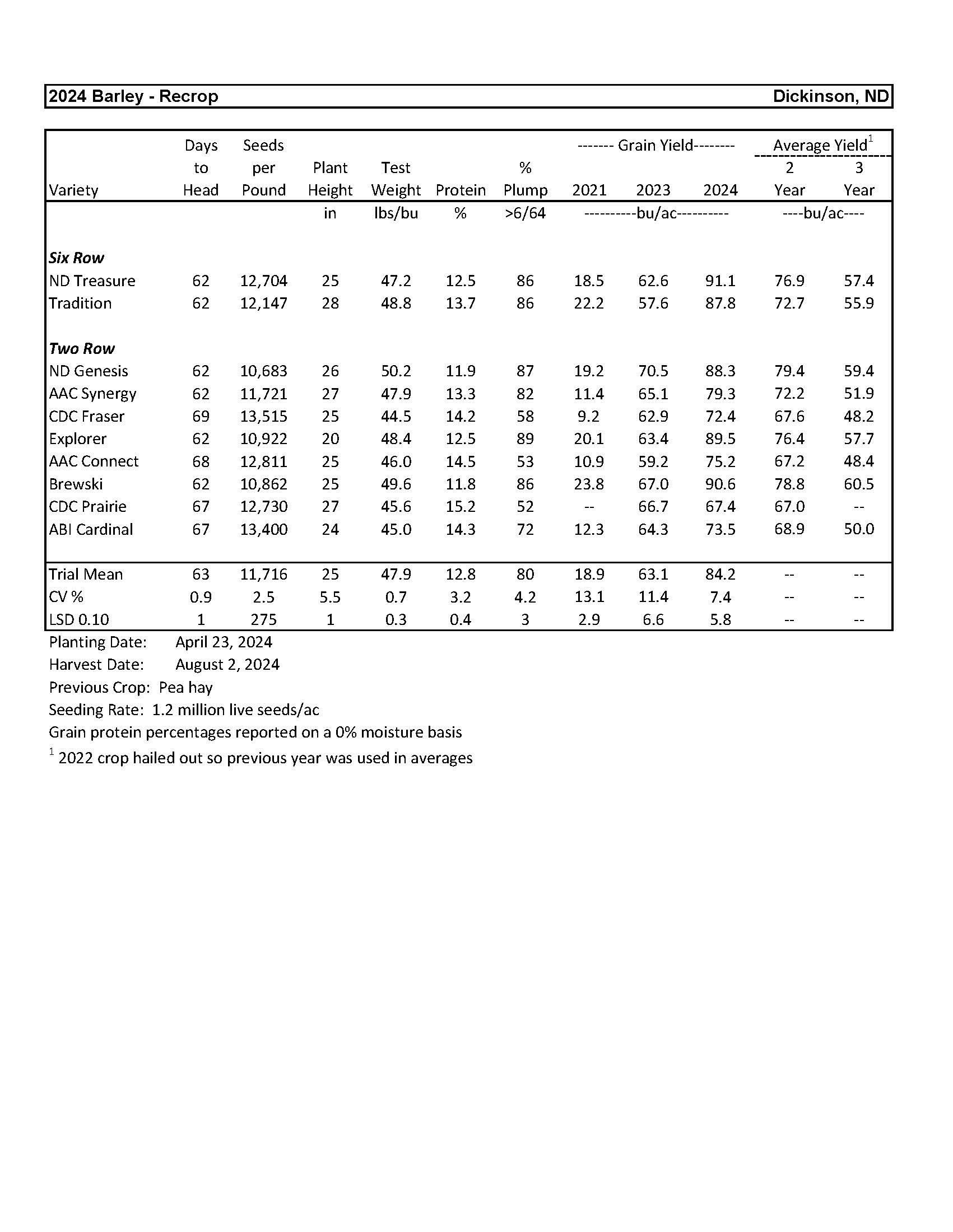 ((Research Report, Dickinson REC, December 2024))Dickinson Research Extension Center Annual Report 2024
