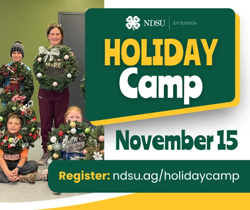 4-H membership is NOT required for participation. Scholarships are available for income eligible families. Please contact the Center for 4-H office for more information 701-231-4361.