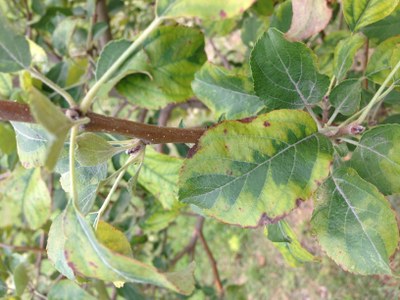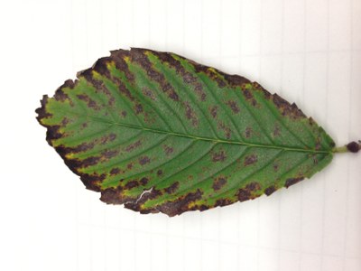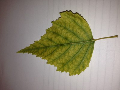 River birch leaf with interveinal chlorosis (Esther McGinnis, NDSU)