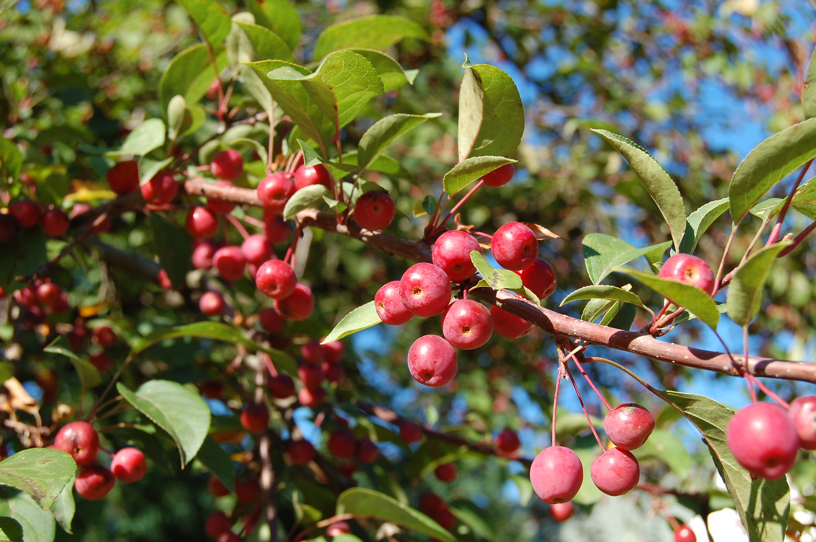 Not all red fruits are the same. Some red fruits are dark and dull. Others are brilliant. Cultivars with the brightest fruits include ‘Adirondack’, ‘Donald Wyman’, Red Jewel® and ‘Sargent’.