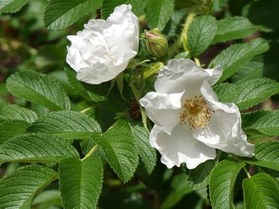 Everyone loves roses, but most roses require lots of maintenance. Consider the rugosa rose (shown below). These plants tolerate heat, drought, salt and wind—hey, that makes them perfect for us in North Dakota! Some varieties bloom all summer and have scarlet rose hips in winter.