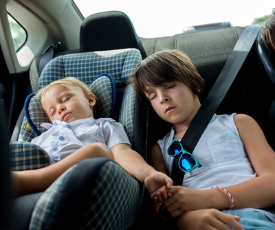 Your toddler just fell asleep in his car seat and your 6-year-old is engaged in a game in the booster seat.