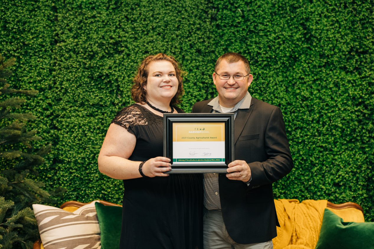 The success, dedication and hard work of outstanding agriculturists in 53 counties in North Dakota and 10 counties in Minnesota were honored during the 47th annual Harvest Bowl program at North Dakota State University on Nov. 19, 2021. Congratulations to Greg and Janet Amundson, the 2021 Harvest Bowl honorees for Grand Forks County! Greg and Janet Amundson raise small grains, sunflowers, soybeans, and corn near Gilby using no-till, strip-till and conservation farming practices. They have been farming for 16 years and received the Grand Forks County Soil Conservation Award in 2019. Greg also is a soil conservation board member, Grand Forks Crop Improvement Board president and Corn Growers Association board member. Janet is a children and family therapist.
