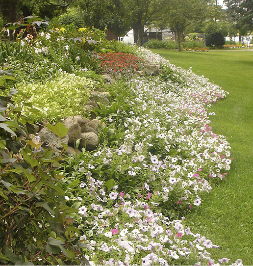 Annuals are used for their continuous flower color throughout most of the growing season. They are started anew each year. Perennials are used for their permanence in the landscape setting, offering specific periods of bloom, relatively low maintenance and wide adaptability.