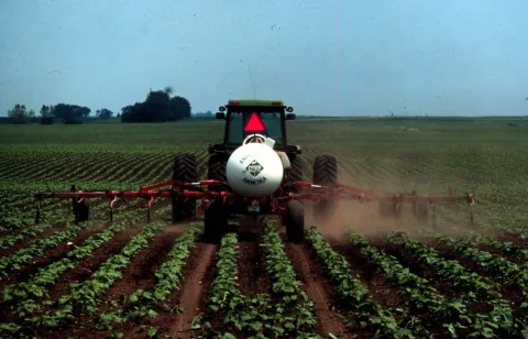 If deeper soil sampling is not practical, an N nonlimiting area of a full rate of N based on the N calculator or the N recommendation tables should be applied, and about half the N calculator rate should be applied to the rest of the field. Using an active-optical sensor or “best-guess” assessment of color differences and vigor of the N nonlimiting area, compared with the rest of the field, a decision whether or not to apply additional N in-season could be made or not made between stage V-8 to R1 (approximately V12 to V14) using a side-dress applicator or high-clearance applicator (Figure 1). In fields without a history of sunflower, sugar beet or another deep-rooted crop such as safflower, no additional N likely needs to be applied.