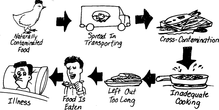 Foodborne illness: Disease or injury occurring as a result of consumption of contaminated food.
