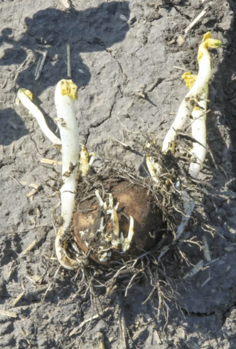 Another concern for potato growers is controlling weeds with glyphosate prior to potato emergence. If potato sprouts are cracking through the soil surface, they may encounter spray droplets.