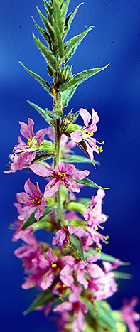 Leafy spurge is a long-lived perennial that normally grows 2 to 3 feet tall from a woody crown below the soil surface. Each crown area produces several upright stems, giving the plant a clumplike appearance. The plant bears numerous linear-shaped leaves with smooth margins. The leaves have a characteristic bluish-green color but turn yellow or reddish-orange in the fall. Stems originating from crown buds and roots begin growth in late April, making leafy spurge one of the first plants to emerge in the spring. The early and rapid growth gives leafy spurge a competitive advantage over crop and pasture plants. All parts of the plant contain a milky juice called latex, which is a useful identifying characteristic.