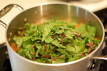 2. Add onions, carrots, cabbage, string beans and garlic.