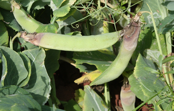 FIGURE 4 – Tan, sunken lesions covered with grayish mycelium on pods