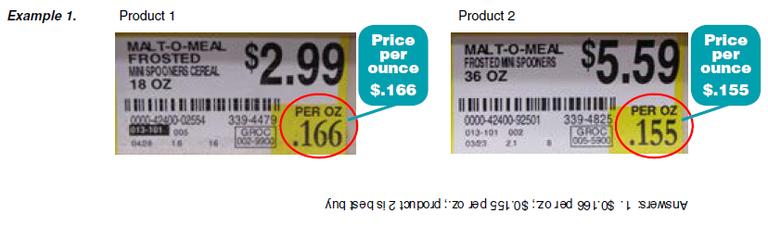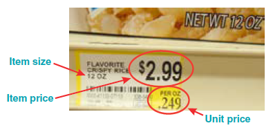– Item price ÷ item size = unit price