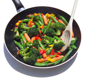 • Add 2 tablespoons oil. Stir-fry onion until tender, add garlic and then remaining vegetables. Cook the vegetables to the desired tenderness. - Combine the ingredients.