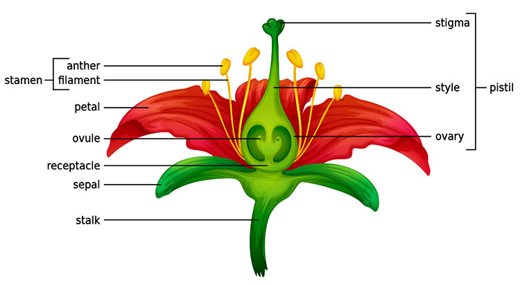 In contrast to cucurbits, Soloanaceae crops such as tomatoes, peppers and eggplants produce “perfect” flowers that contain male and female reproductive structures. Flower anatomy differs from the idealized image in Figure 1.