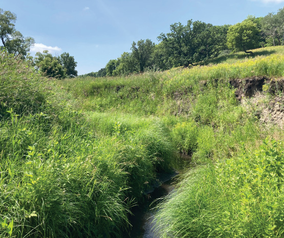 Figure 4. b) The same riparian area on July 6, 2022. Early removal of grazing livestock allowed vegetation to regrow and provide protection during fall and early spring flood events.