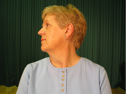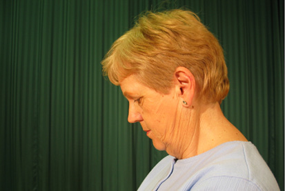 5. To stretch back of neck and shoulder muscles: Sit or stand straight. Tuck chin in and down to chest. Keep chin down and try to pull head back. Hold for six seconds, then relax. Repeat four times.