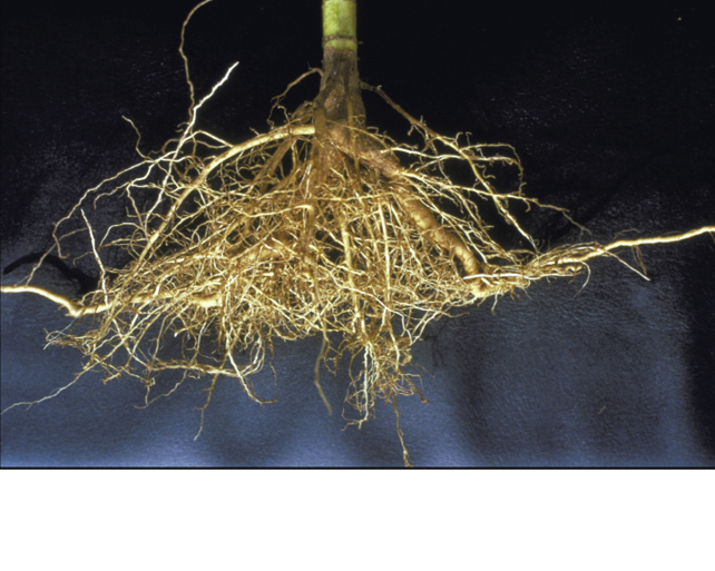 • Poor root growth decreases uptake of essential plant nutrients resulting in various deficiency symptoms, especially phosphorus (e.g., death of lower leaves).