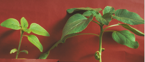 FIGURE 1 - N deficient (left) and healthy (right) sunflower seedlings.