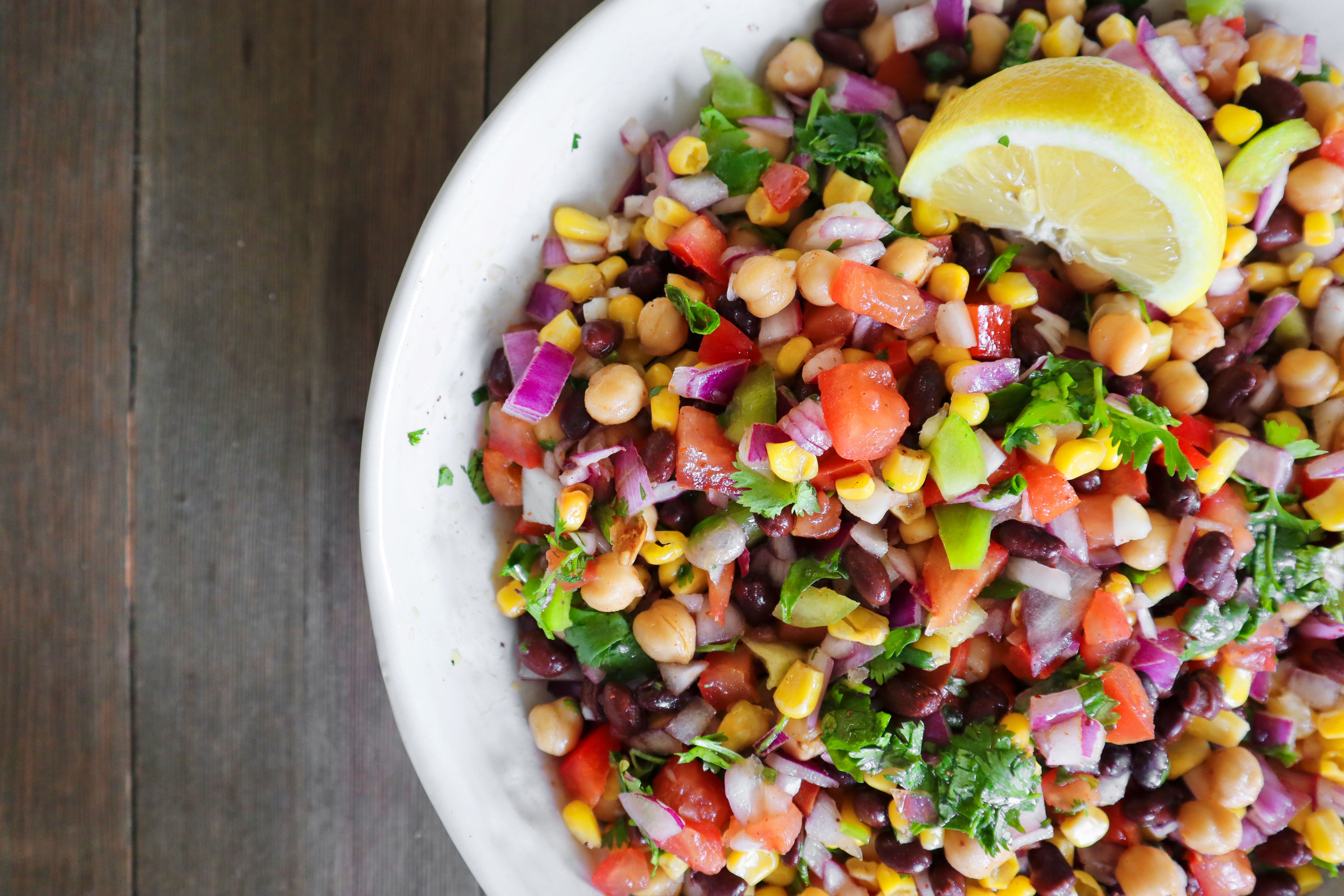 Whisk together olive oil, sugar, white wine vinegar and chili powder in a large bowl. Stir in the remaining ingredients, cover and refrigerate.