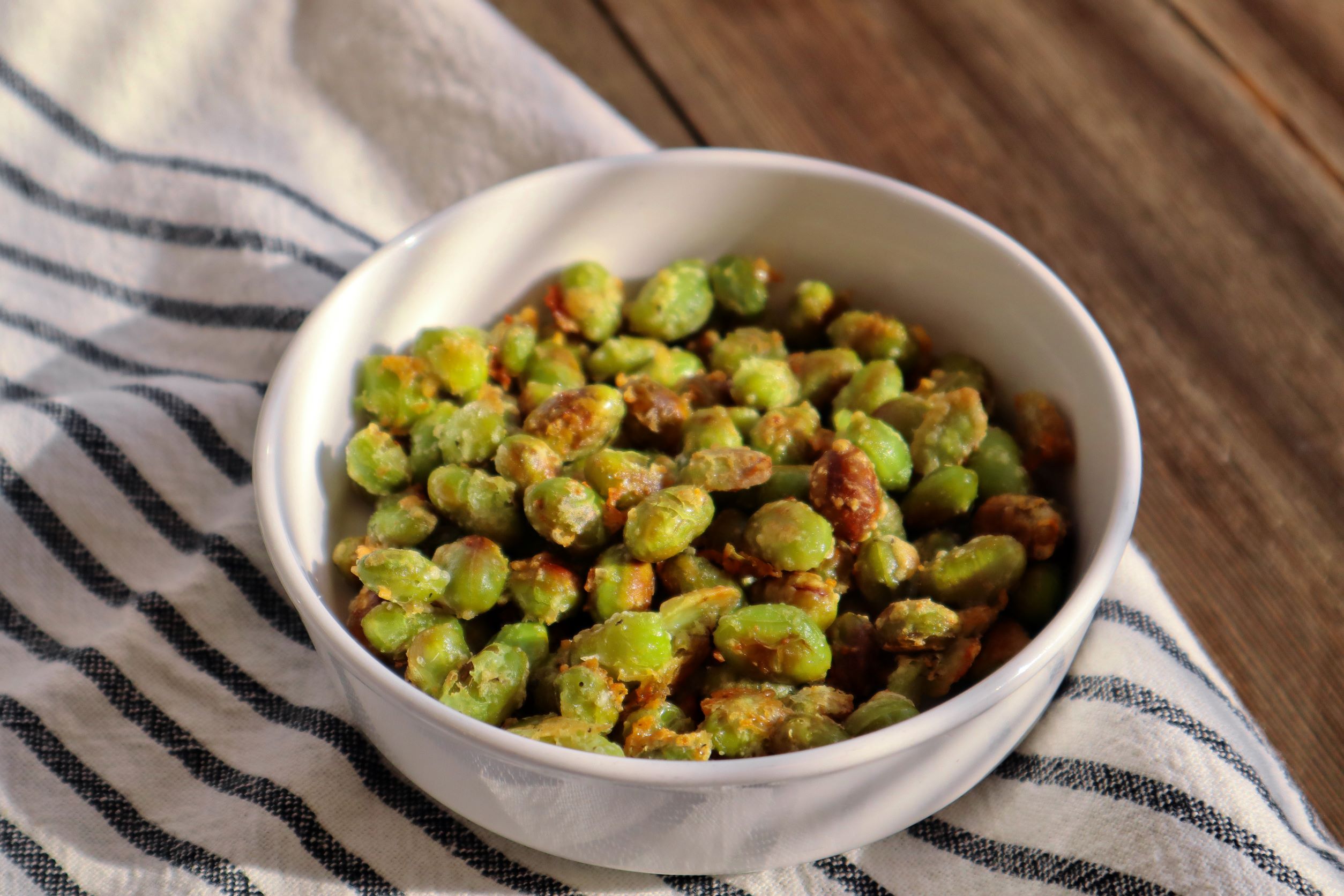 Spread the edamame mixture on a rimmed baking sheet and bake, turning once halfway through, until the cheese starts to brown (about 10 to 15 minutes).