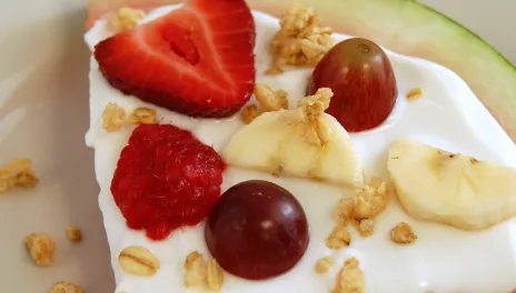 A yogurt sauce with your favorite fruit toppings. Makes a great after-school snack!