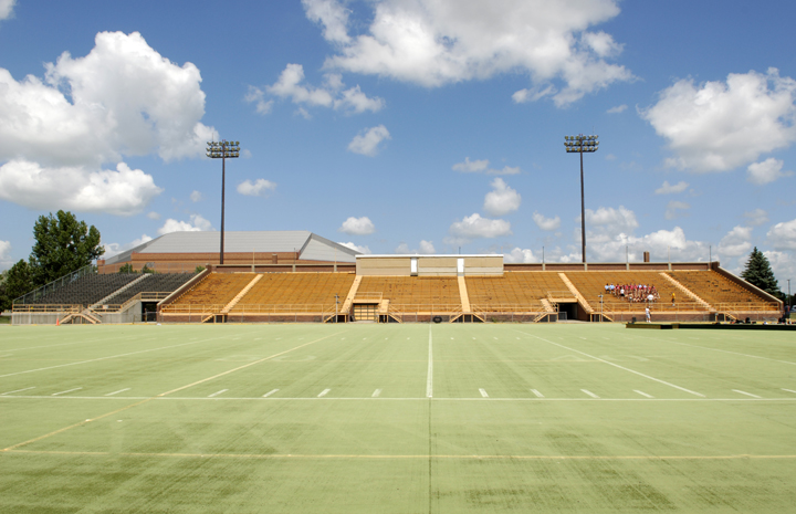 Dacotah Field, originally located north of Festival Hall (where today is the mall, the area to the east of the Memorial Student Union), had its beginnings in 1910. Plans called for the field to be encircled with a very substantial and artistic fence donated by Mr. C.F. Leonard, representing the American Steel and Wire Fence Company. At about a distance of eight feet to the inside and paralleling the fence, the planners planted a hedge that added to the general attractiveness of the field screened it from the view of those who seek something for nothing. Until the hedge grew to an effective height a canvas wall was employed for this purpose. Work begun on the erection of the fence in the early fall of 1910 but it was not expected that the field will be ready for that year's fall athletic events (Beacon Across the Prairie, p. 71; The Weekly Spectrum, October 25, 1910, p. 1).