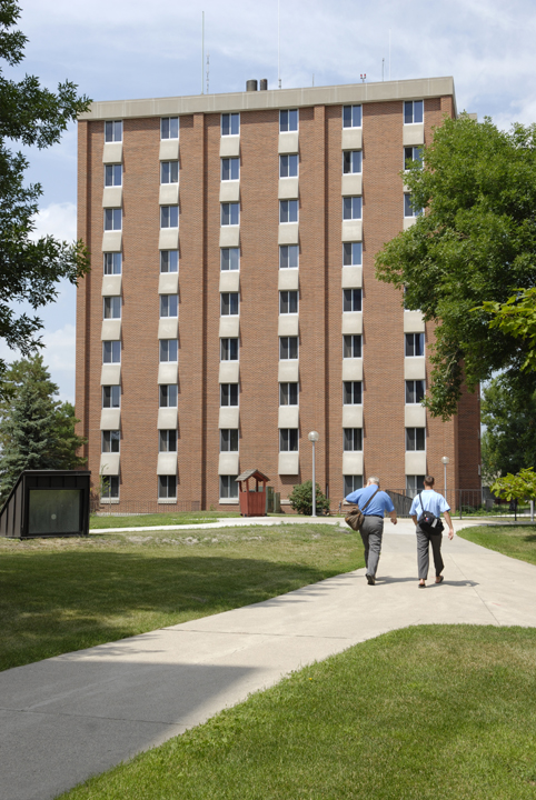 Seim Hall (originally the West High Rise) was built in 1972 (at the cost of $1.5 million) as the third in a series of nine-story high rise buildings. It housed 293 male and female students in two-story subdivisions alternating between seventy men and seventy women. The West High Rise was renamed Seim Hall in 1984 to honor Norm Seim, NDSU's Housing Director for twenty-two years.