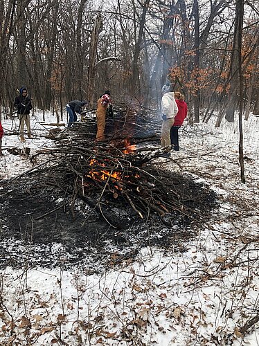 headed by Audubon Dakota. After several years of collecting ‘pre’-restoration data, the active removal of Buckthorn and restoration of Cassel Woods began in the winter of 2018. Audubon Dakota and students from Dr. Smith’s sophomore research course (BIOL 271) cut and burned the invasive tree in the first 4-acre plot. Students in BIOL 271 have been using Cassel Woods since the Fall of 2016 as the field site for a course in which they design and conduct their own authentic research project.