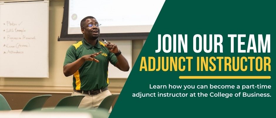 The College of Business is seeking applications for part-time adjunct instructors for one or more of the following areas: