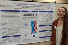 Jenna Duttenhefner presented her research “Impact of GSTP1 Knockdown on Pancreatic Ductal Adenocarcinoma (PDAC) Cell Metabolism” at the North Dakota Academy of Sciences. Jenna is mentored by Dr. Katie Reindl.