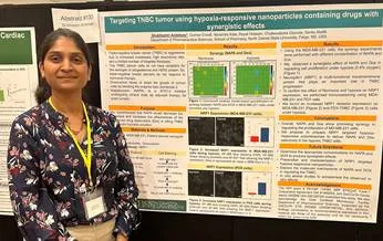 Shubhashri Ambhore presented a poster at the AAPS meeting titled “Targeting TNBC tumor using hypoxia-responsive nanoparticles containing drugs with synergistic effects. Shubhashri is mentored by Dr. Sanku Mallik (Pharmaceutical Sciences).