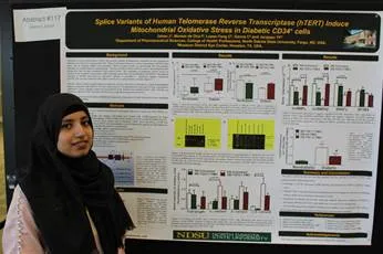 Jesmin Jahan presented a poster at the AAPS meeting titled “Splice variants of human telomerase reverse transcriptase (hTERT) induce mitochondrial oxidative stress in diabetic CD34+ cells”. Jesmin is mentored by Dr. Yagna Jarajapu (Pharmaceutical Sciences).