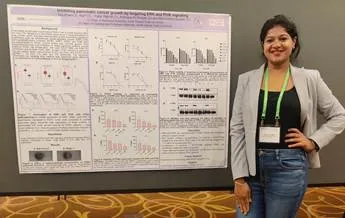 Vikneshwari Natarajan presented a poster at the American Association for Cancer Research (AACR) annual meeting in New Orleans, LA. Her poster was titled “PDAC-derived exosomes manipulate tumor pericyte phenotype”. Vikneshwari is mentored by Dr. Jiha Kim.