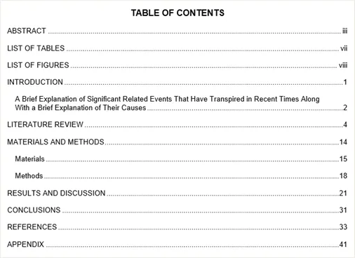 The Table of Contents is a required section that lists the headings that appear in the disquisition and the page number for finding them (Figure 4).