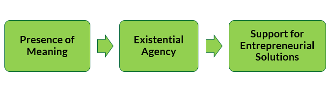 We use regression analysis to test for the characteristics of individuals that uniquely contribute to belief in entrepreneurial solutions (after controlling for the influences of other variables). We find that existential agency, perceived presence of meaning, search for meaning, and income uniquely and significantly influence people’s belief that entrepreneurship can solve important societal problems. Individuals who believe they can maintain meaning or purpose in life (have existential agency), those who are searching for meaning, and those with higher incomes are more likely to view entrepreneurial solutions to societal problems positively.