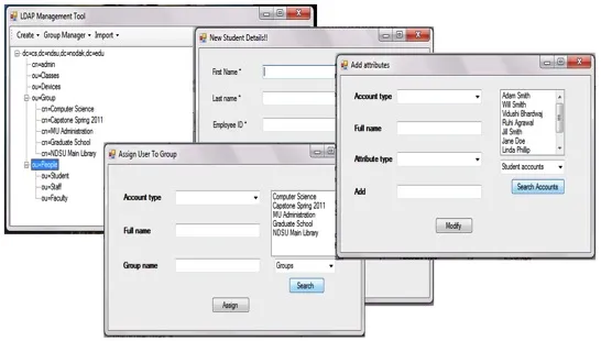 LDAP stands for lightweight directory access protocol. It is a set of protocols for accessing information directories. The NDSU Computer Science department currently uses LDAP directories to store information of user accounts, group membership, and access information. Our project is to develop a Client for the OpenLdap Server. An LdapClient is used to request and view LDAP entries from an LDAP Directory Server.