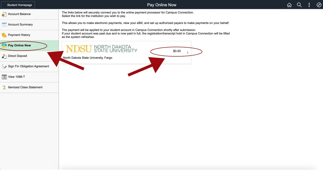 Tuition for all NDSU classes is due in the second week of each semester. Remember to pay your tuition in a timely manner so you do not end up with late fees. Why pay more for your tuition than you need to? To view your account balance follow these steps.