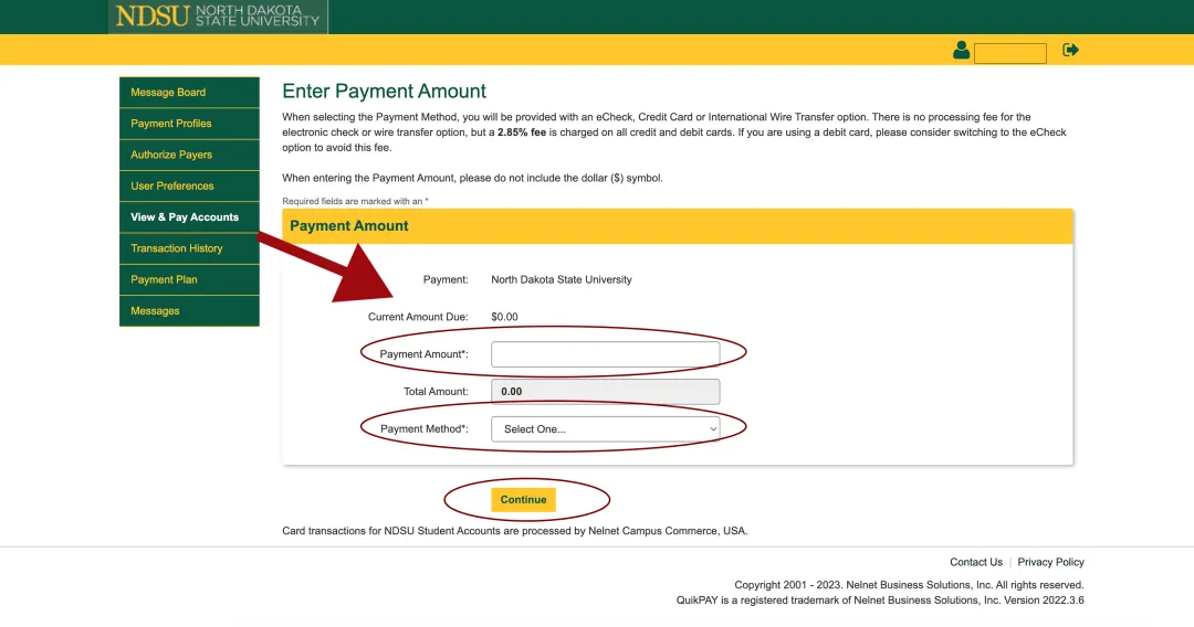 The most convenient way to pay your tuition for many people is to pay online with an eCheck. You may also pay online with a credit or debit card; however there will be a processing fee applied to your charge. There are alternative ways to pay your tuition, like mailing a check, dropping off payment, monthly payments, and 529 account payments, learn other ways to pay your tuition on the NDSU OneStop webpage.