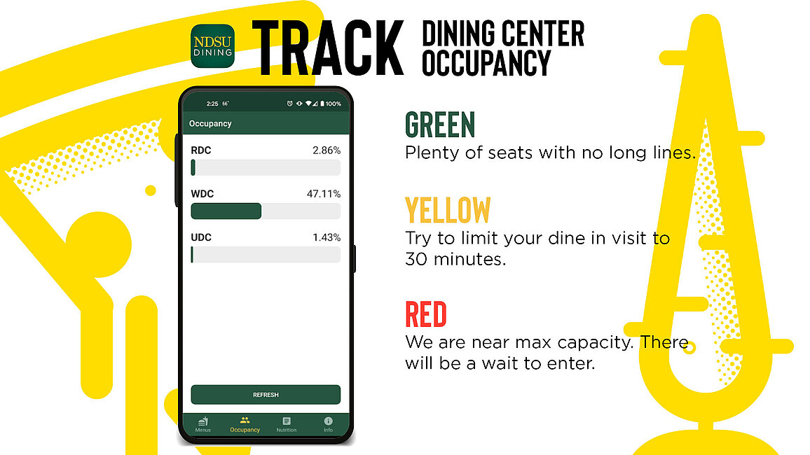 View the Occupancy Tracker or find occupancy information in the NDSU Dining App.