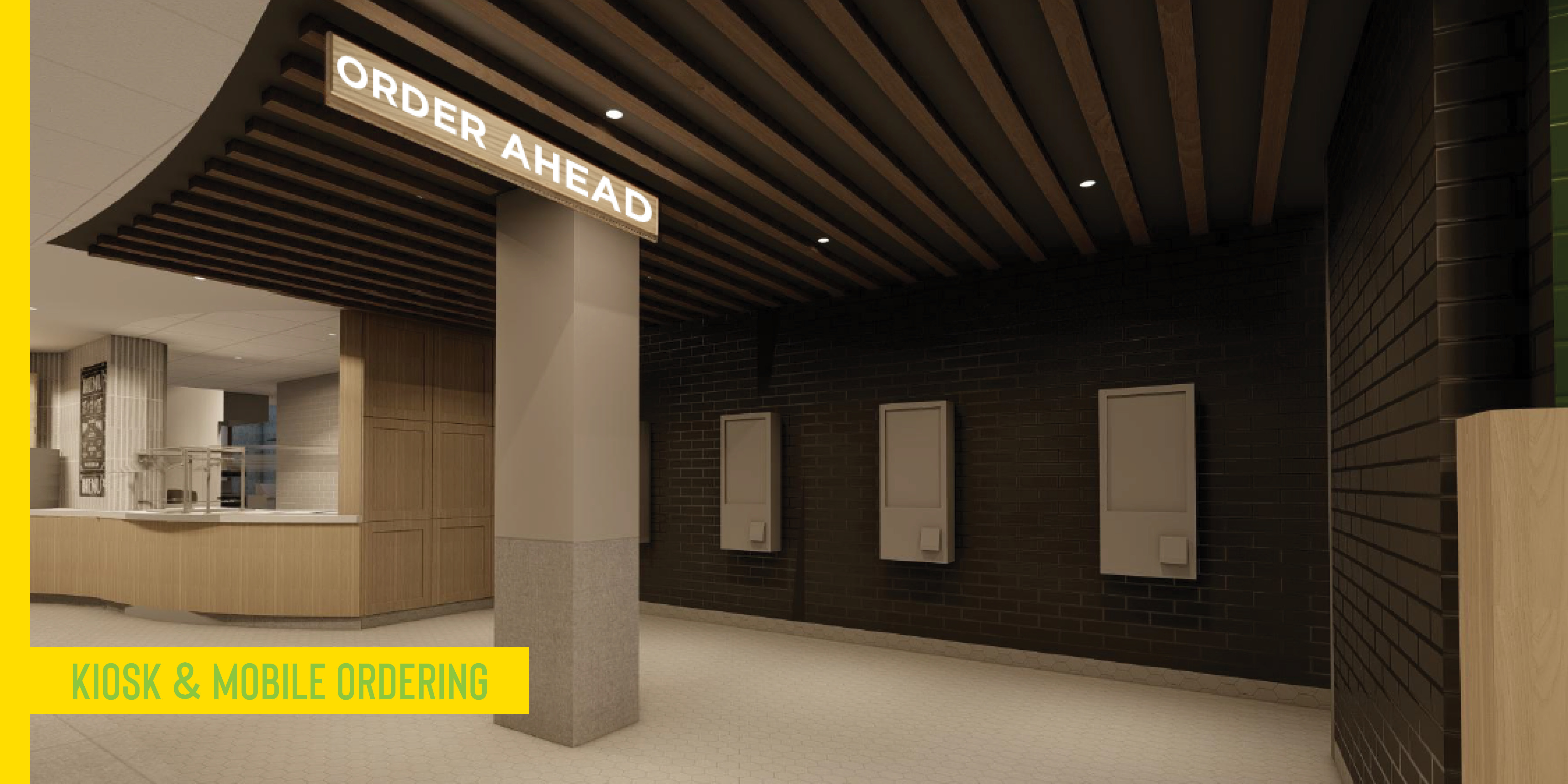 Step-by-step guides for ordering at the kiosks located outside of the Union Market by Burgers at the U or the Union Market exit by Thundar's Game Room.